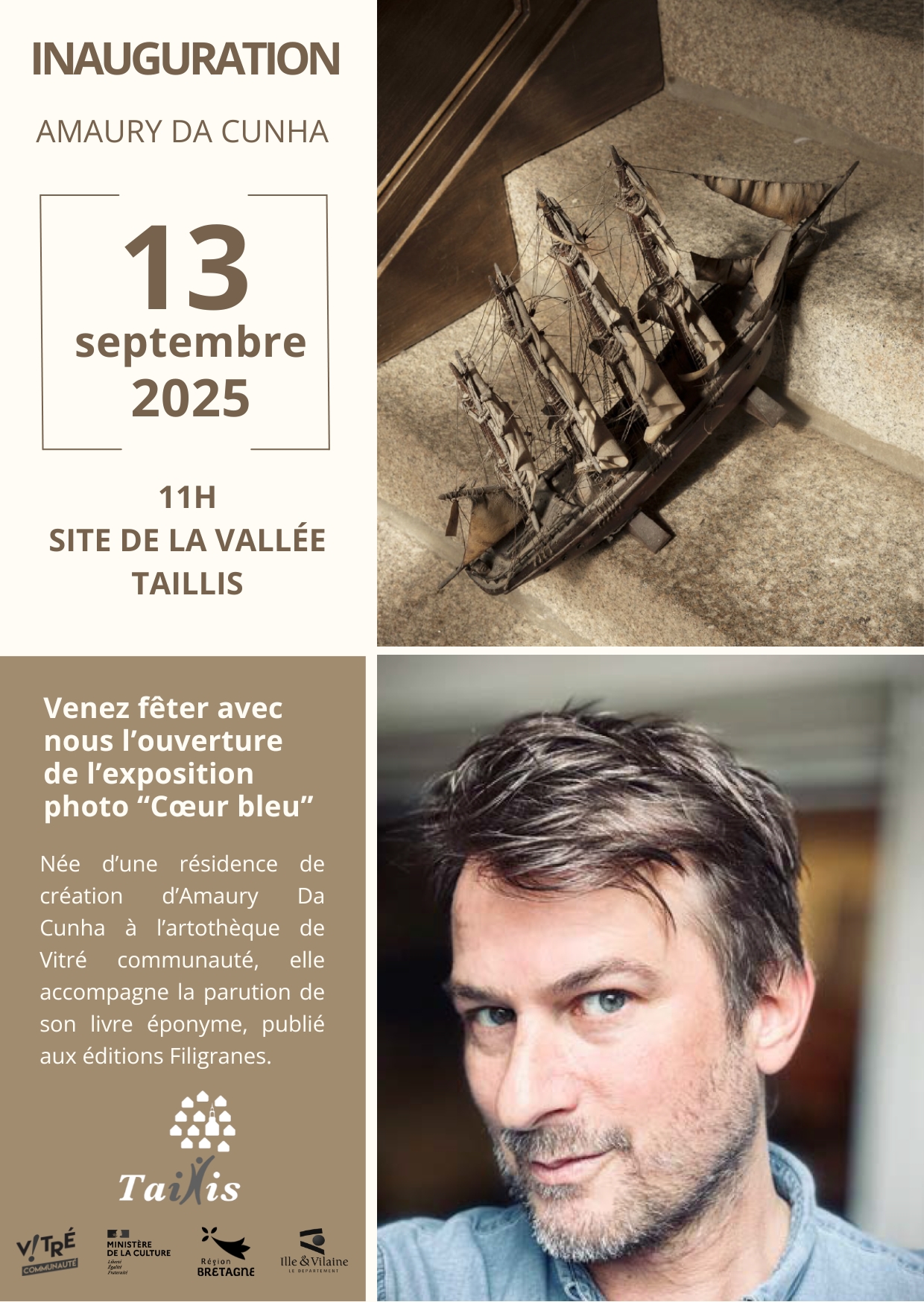 Grâce à un partenariat entre Vitré Communauté et les communes de Landavran, Taillis et La Selle-Guerchaise, l’exposition Cœur bleu invite les visiteurs à découvrir les œuvres d’Amaury da Cunha au gré d’une déambulation dans les bourgs. Le livre Cœur bleu peut être consulté dans les mairies partenaires, à la bibliothèque de Taillis et à l’artothèque I Quai des arts.
