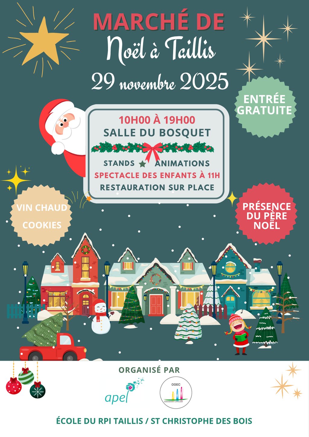 đ Premier MarchĂ© de NoĂ«l de l'APEL et de l'OGEC du RPI de l'Ă©cole de Taillis St Christophe des Bois ! đ
