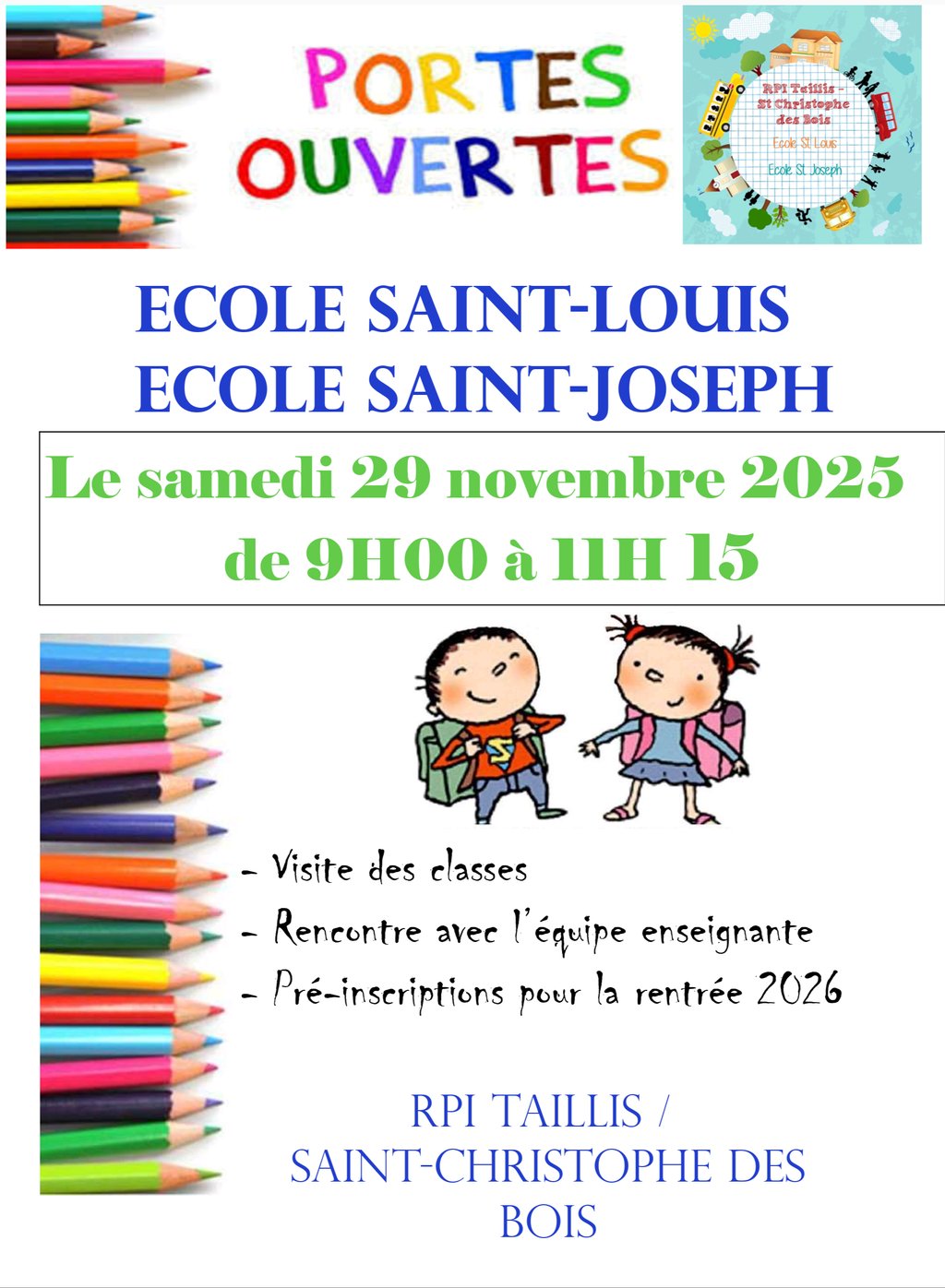 đ Les Ă©coles Saint-Louis de Taillis et Saint-Joseph de Saint Christophe des Bois vous ouvrent leurs portes !