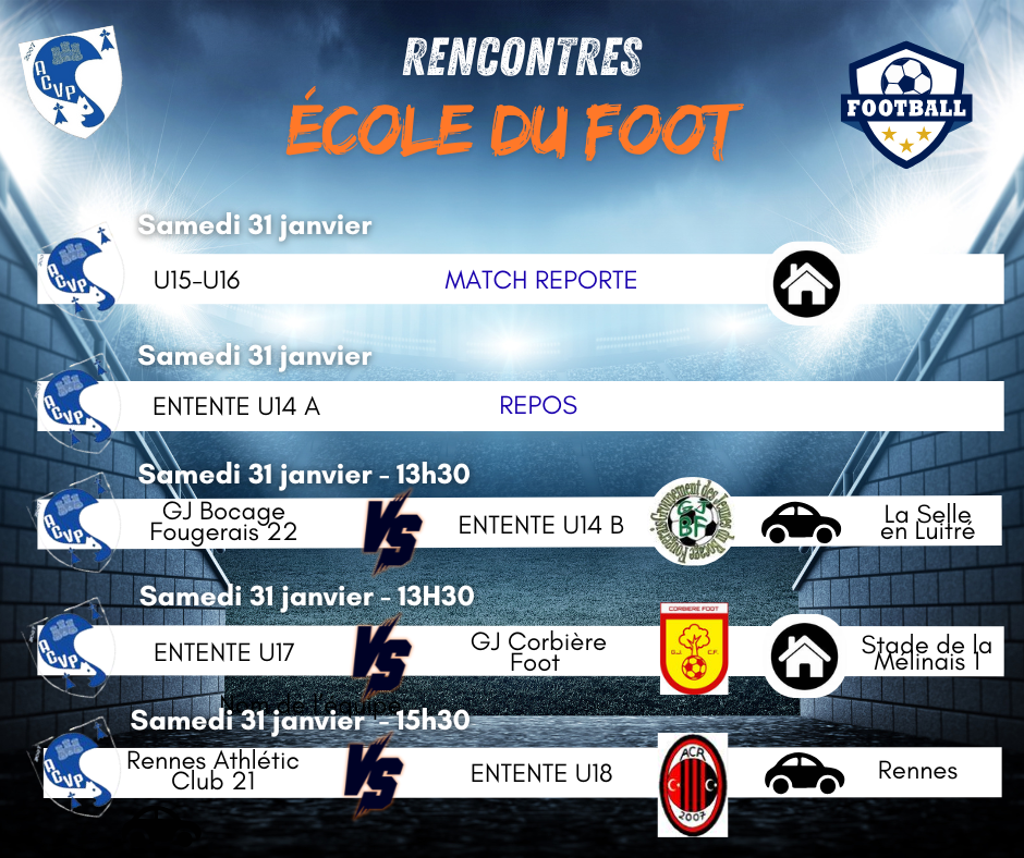 Vous trouverez en pièce jointe le programme des matchs pour les catégories U15 à U18.