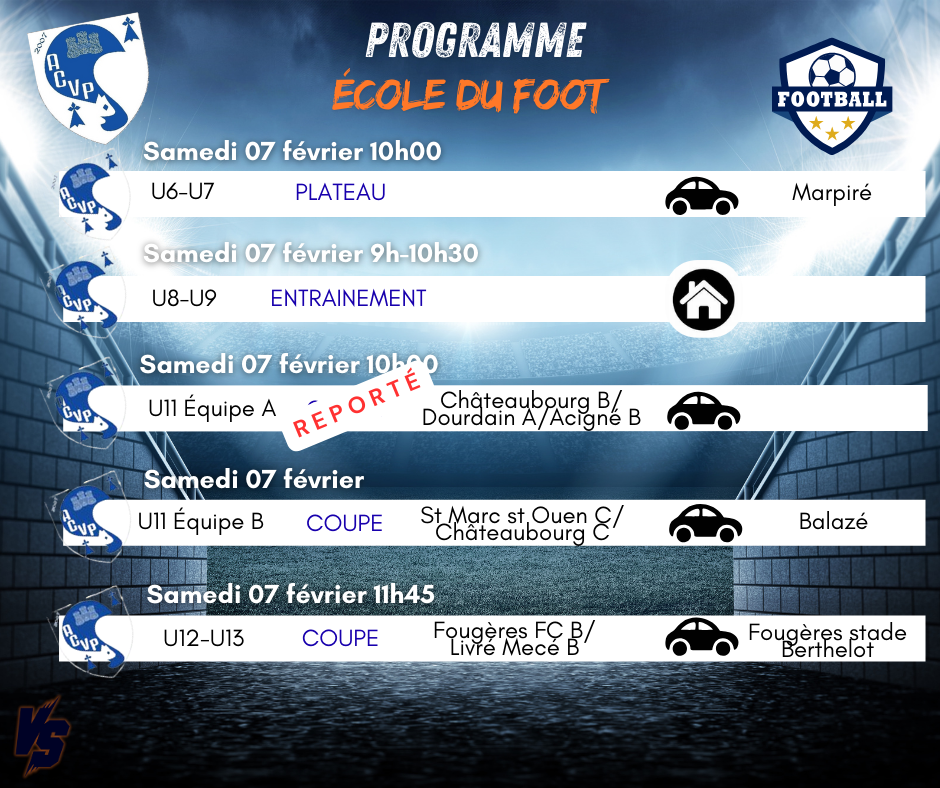 Vous trouverez en pièce jointe le planning des matchs pour les équipes de U6 à U13.